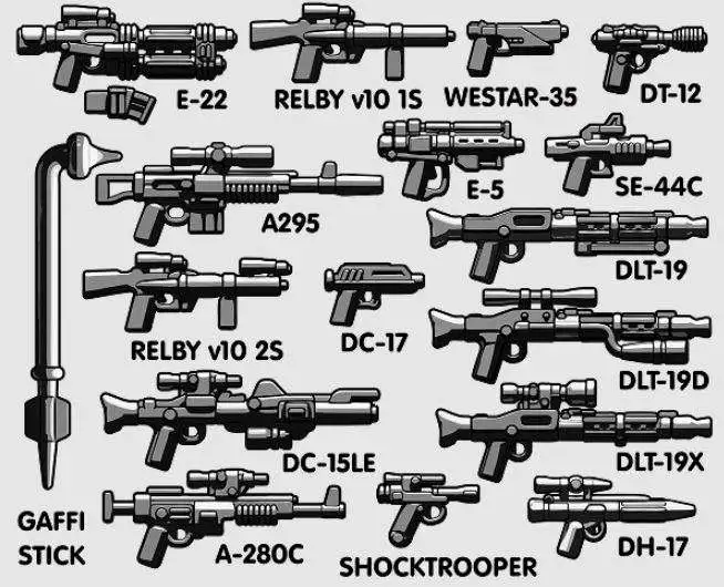 Blast bolts hit with precise direction and maximum magnitude when theyre fired from the weapons of the BrickArms Vector Blaster Pack! Including everything from light blast pistols to heavy blast rifles, the Blaster Pack – Vector features enough firepower to dominate any galactic conflict!