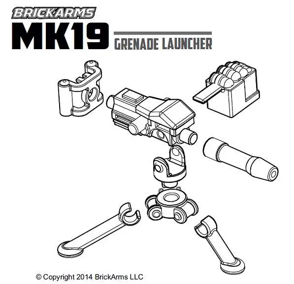 The ultimate in explosive mounted firepower, the BrickArms Mk19 Grenade Launcher combines the accuracy and rate of fire of a belt-fed machine gun with the raw power of a grenade launcher.
